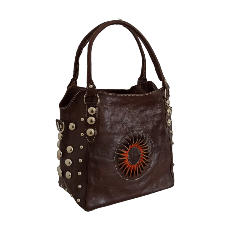 Bolso de Piel Artesanal con Detalle de Sol y Tachuelas