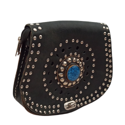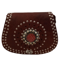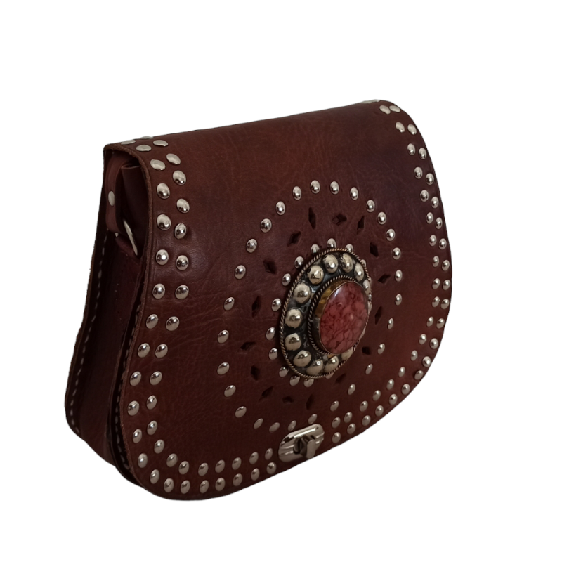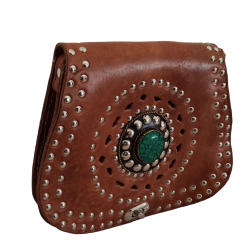 Bolso de cuero engrasado con detalle piedra.