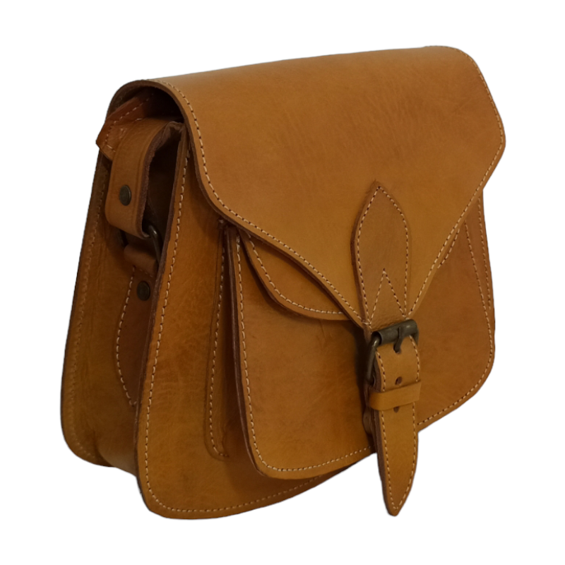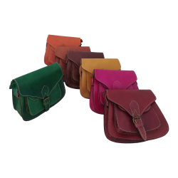 Bolso bandolera de piel disponible en colores : Naranja,cuero,marrón,amarillo,fucsia,burdeos y verde.