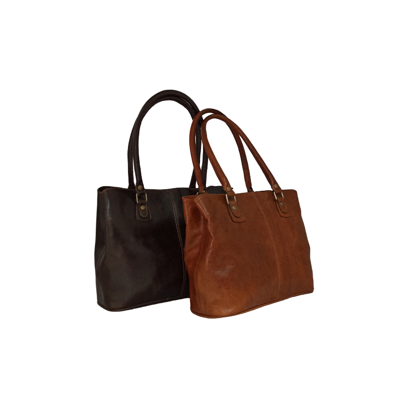Descubre nuestro elegante bolso de piel genuina, disponible en colores sofisticados como cuero, negro y coñac.