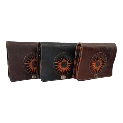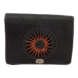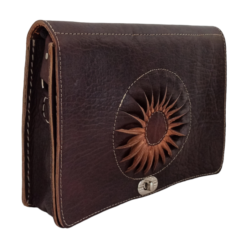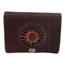 Bolso de cuero engrasado grande, bolso de cuero modelo horizontal con detalle de sol en cuero.